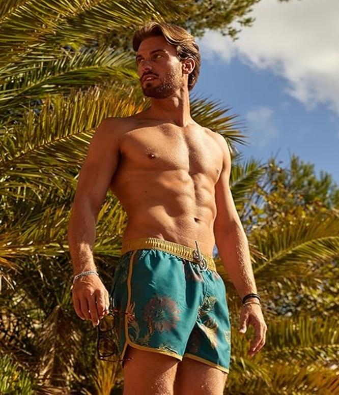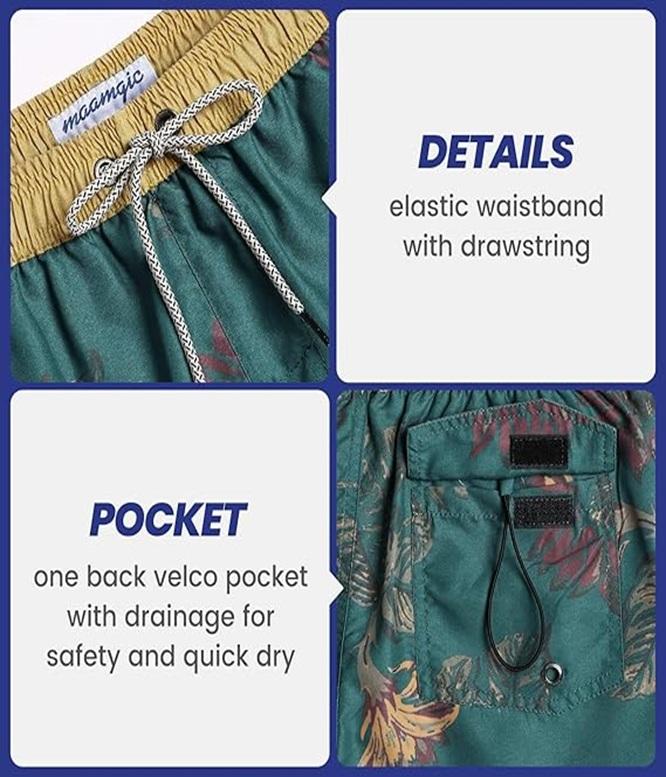 กางเกงว่ายน้ำผู้ชายคุณภาพสูง ยืดหยุ่นได้ แห้งเร็ว ลายพิมพ์ทั่วตัว สีสันตามสั่ง พร้อมเชือกผูกเอวแบบยืดหยุ่น