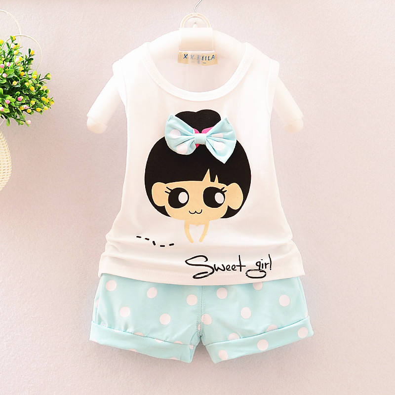 ชุดเสื้อผ้าเด็กผู้หญิง 2 ชิ้น คุณภาพสูง น่ารัก สไตล์บูติก ลายการ์ตูน พิมพ์ลายผ้าฝ้าย สำหรับฤดูร้อน