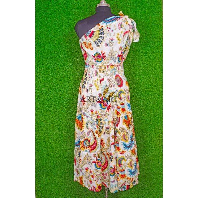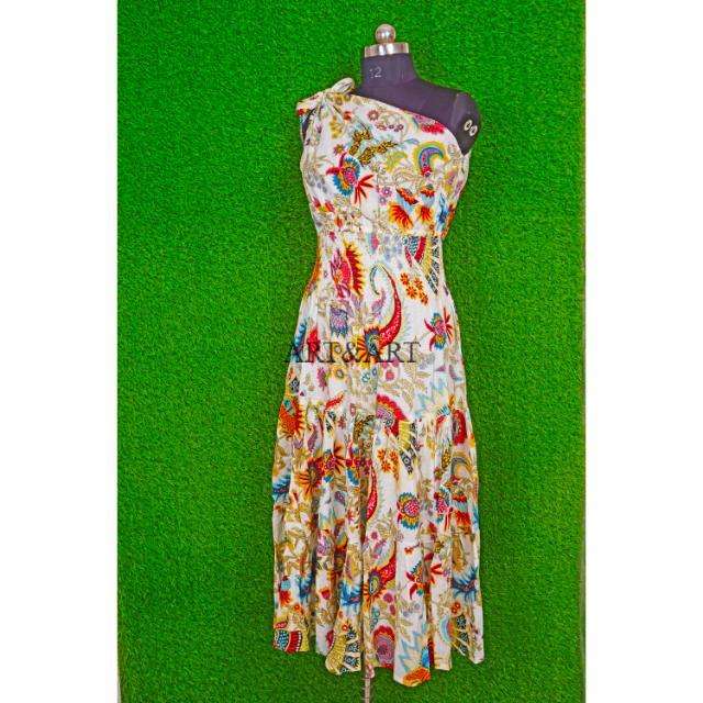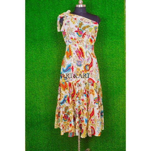 High Quality Sweet Woven Floral Printed Women's Party Wear Cotton One Shoulder Floor-Length Natural Waist Breathable Maxi Dress