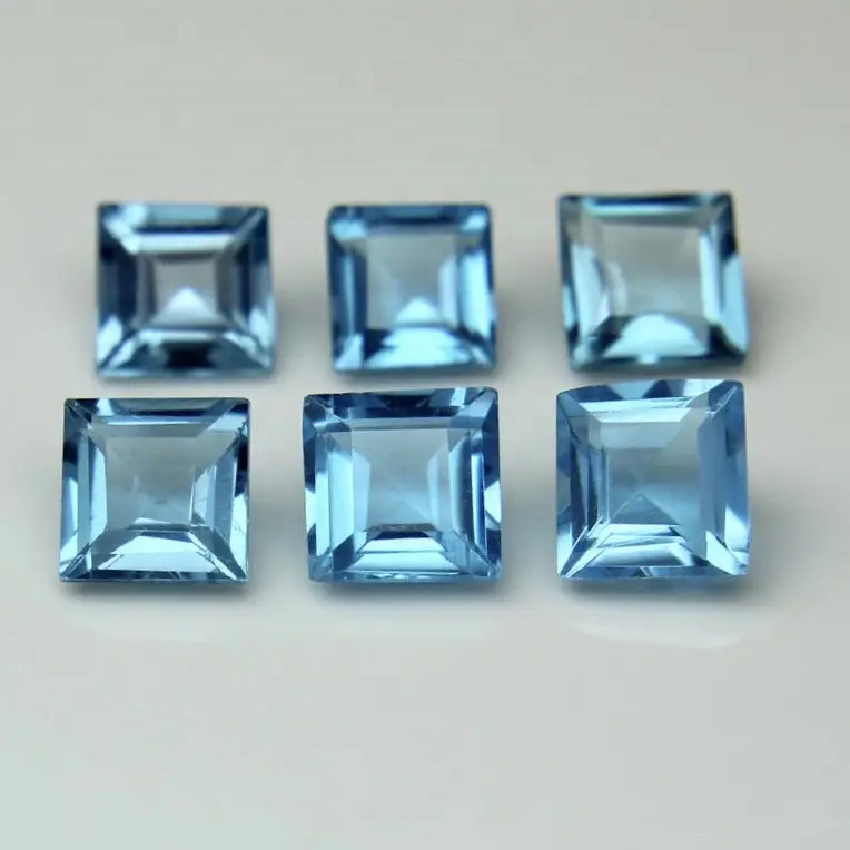 พลอยสวิสสีฟ้าบุษราคัมทรงเหลี่ยมเพชรพลอยหลวม9มม. พลอยธรรมชาติบุษราคัม