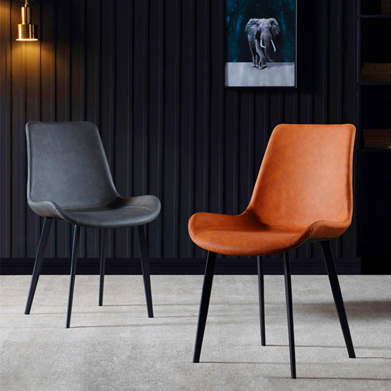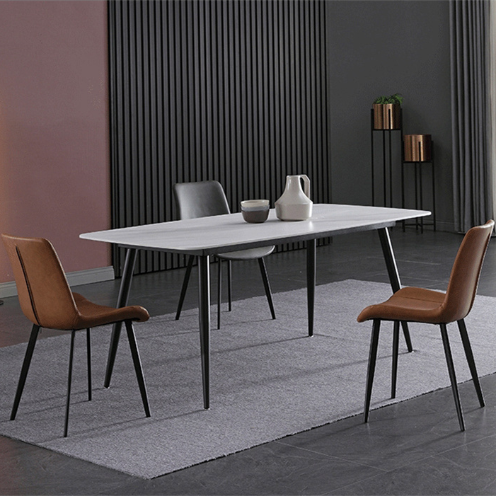 เก้าอี้รับประทานอาหารหรูหราทันสมัยเบาะหนังสังเคราะห์ปรับขยายได้เฟอร์นิเจอร์บ้านเหล็กเรียว