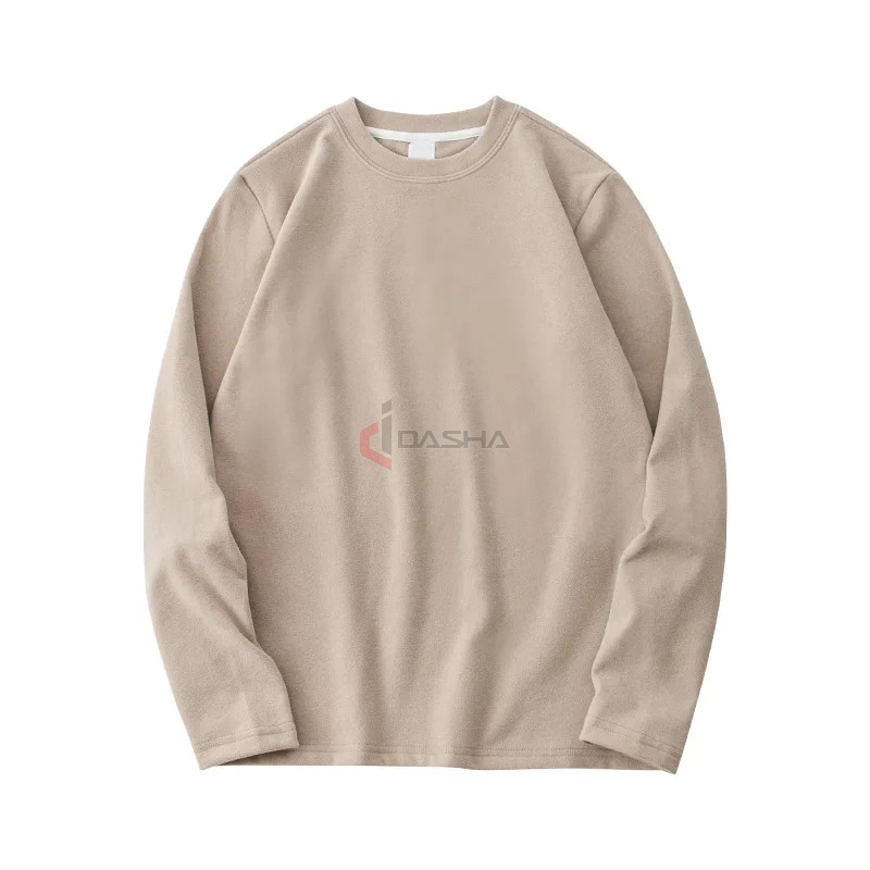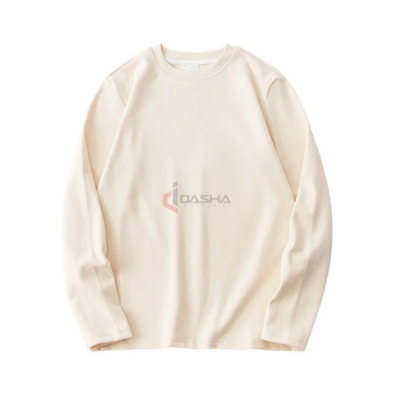 เสื้อยืดผ้าฝ้ายแขนยาวทรงหลวมสีทึบดีไซน์ว่างเปล่าทรงหลวมใส่พอดีตัวสินค้าจากโรงงานโดยตรง