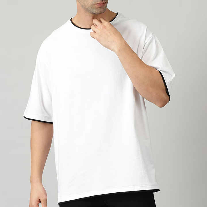 เสื้อยืดคุณภาพสูงสำหรับผู้ชาย ดีไซน์สวย ทูโทน สีตัดกัน แห้งเร็ว ระบายอากาศได้ดี สวมใส่สบาย ผลิตจากผ้าฝ้าย