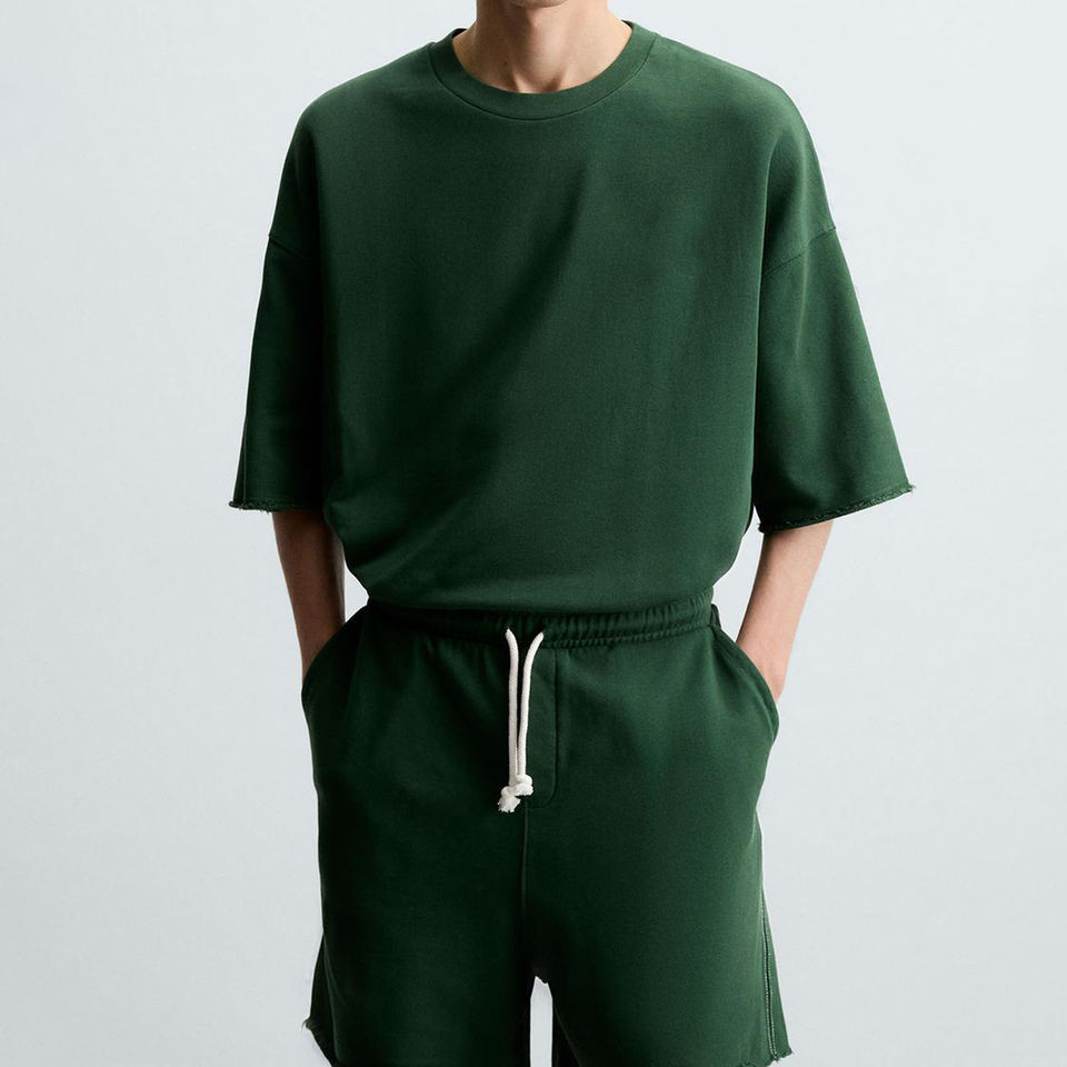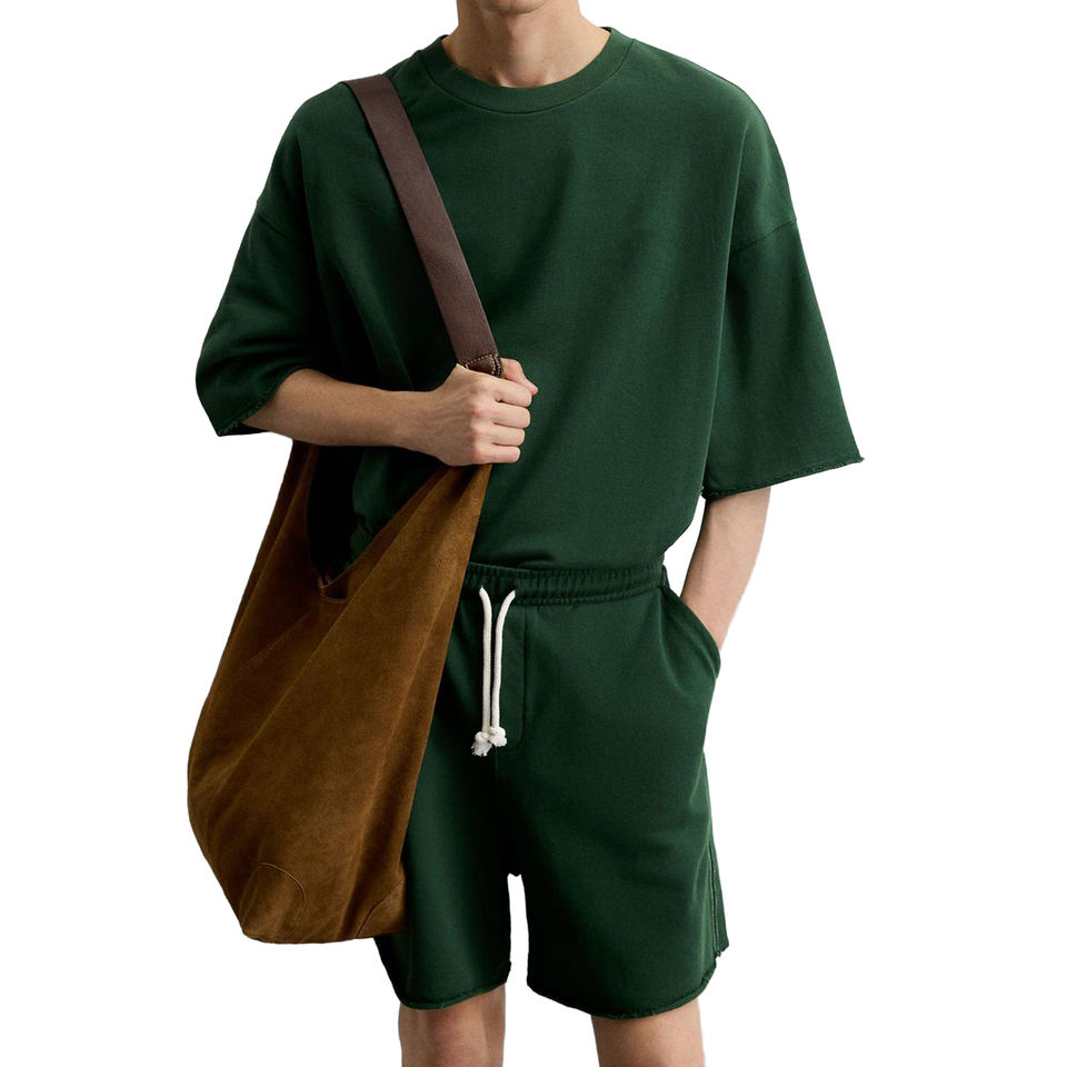 เสื้อยืดคุณภาพสูง กางเกงขาสั้น ผ้าฝ้าย 100% สินค้าพื้นฐาน สีสันปรับแต่งได้ สไตล์วินเทจ ซักแล้ว เสื้อยืดแขนสั้น กางเกงขาสั้นแบบสั่งทำ