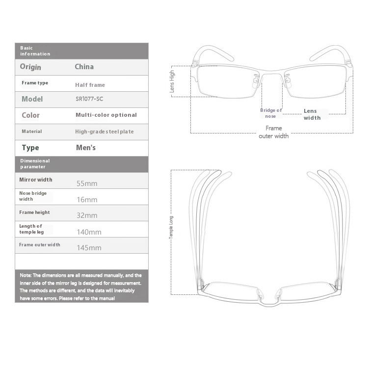 แว่นตาครึ่งกรอบใส่ได้ทั้งชายและหญิงทำจากวัสดุ TR90ใหม่ล่าสุดกรอบแว่นตาแฟชั่นสำหรับนักธุรกิจ