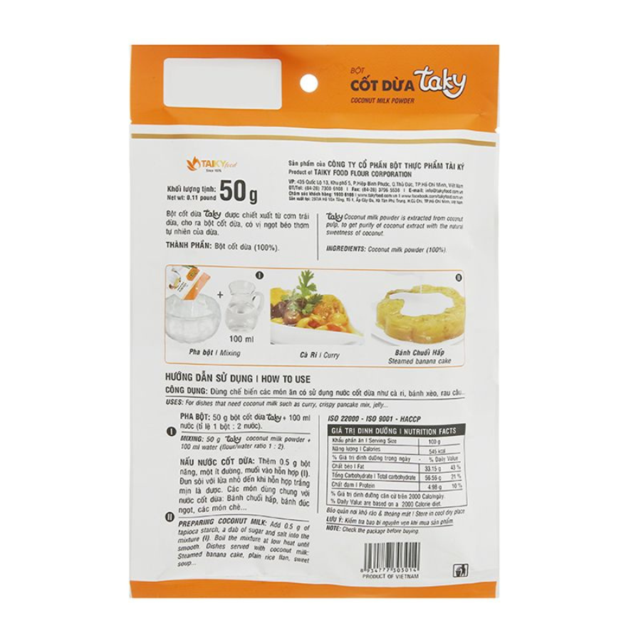 นมมะพร้าวผงคุณภาพสูง ไทกี้ โคท ดูอา 50 กรัม ราคาพิเศษ ผลิตในเวียดนาม