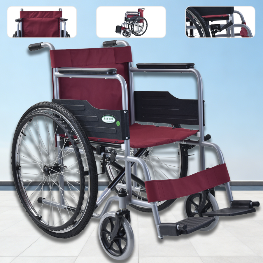 แผ่นหนัง SYIV100-17A takan พับได้ที่พักเท้าคงที่24 "โครงเหล็กล้อหลังรถเข็นคนพิการ100กก.