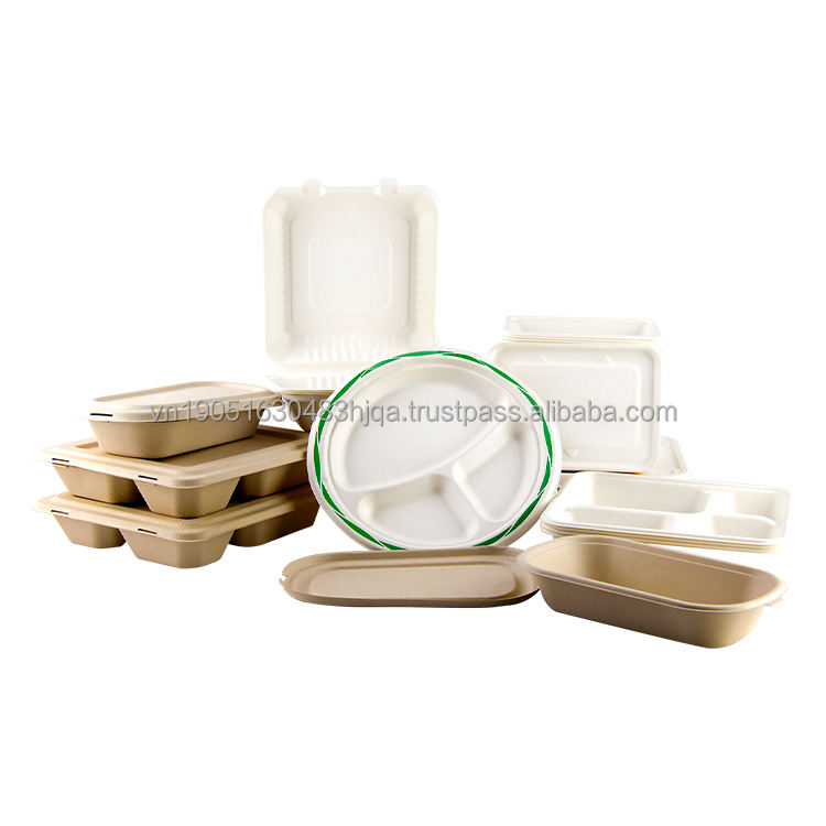 กล่องเก็บอาหารทำจากแป้งข้าวโพดแบบใช้แล้วทิ้งพร้อมช่องทำจากชานอ้อย