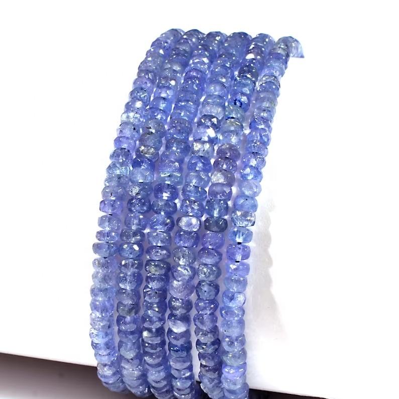 ลูกปัดแทนซาไนต์ทรงรอนเดลเหลี่ยมเพชรพลอยคุณภาพสูง ขนาด 3.5-4.5 มม. ความยาว 16 นิ้ว สำหรับทำเครื่องประดับจากพลอยธรรมชาติ