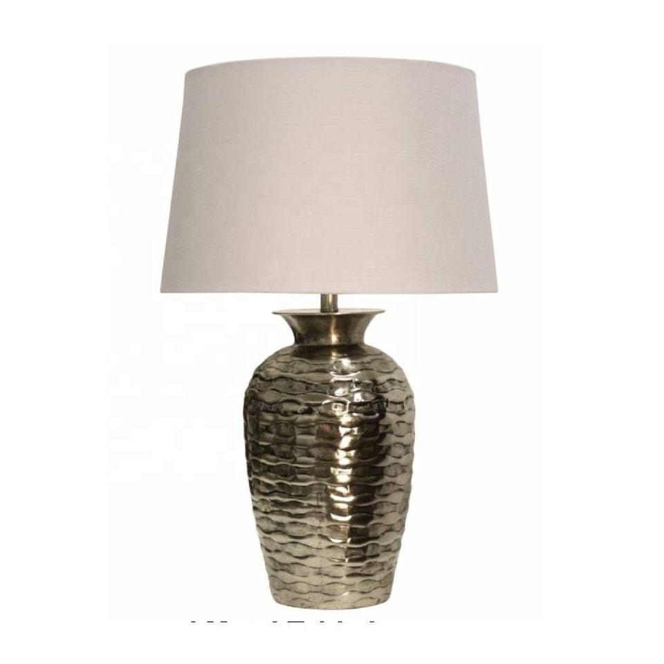 โคมไฟโต๊ะแกะสลักขนาดใหญ่ทำจากนิกเกิลพื้นผิวคุณภาพสูงไม่มีที่บังแดดโคมไฟข้างโต๊ะสำหรับตกแต่งบ้าน