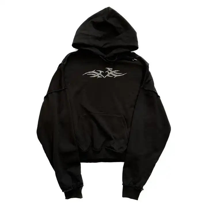 เสื้อฮู้ดผ้าคอตตอน100% ความร้อนสำหรับผู้ชายเสื้อฮู้ดตัดเย็บหน้าจอพิมพ์โลโก้พลอยเทียมแบบสวมหัว