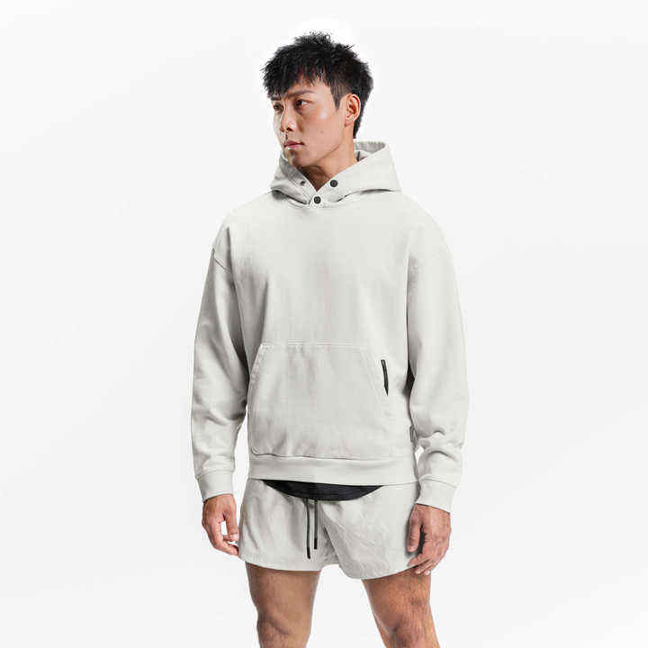 เสื้อสเวตเตอร์มีฮู้ดสำหรับผู้ชายผ้าคอตตอนโพลีไม่มีสายคาดแบบมีกระเป๋าจิงโจ้มีกระดุม