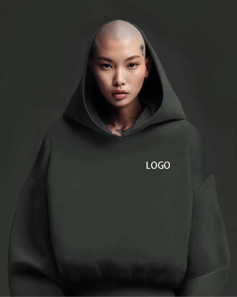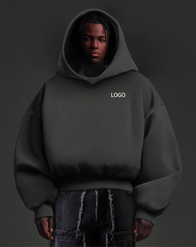 เสื้อครอปที่ไหล่แบบหนารุ่นสั้นแบบไร้เชือกเสื้อมีฮู้ดกำหนดโลโก้ได้เอง500 GSM โอเวอร์ไซส์ Boxy พอดี