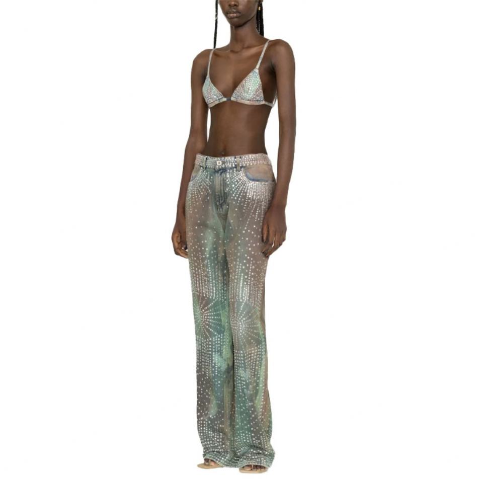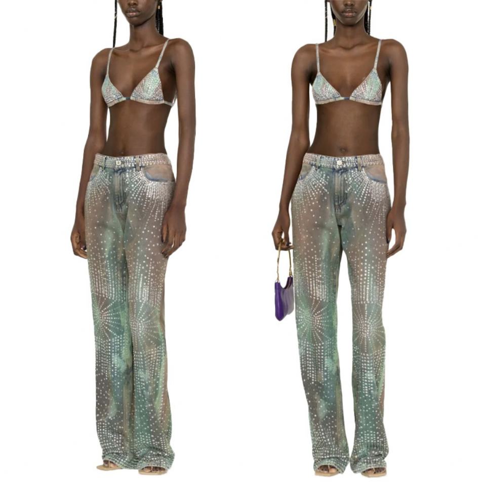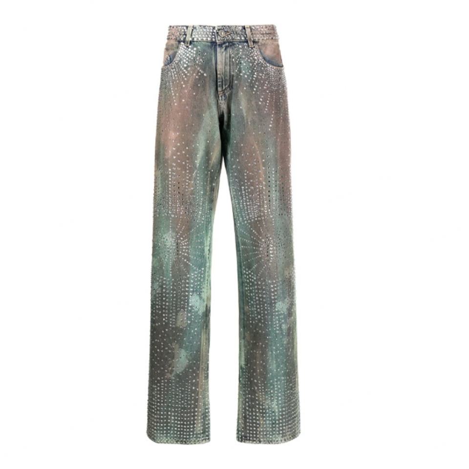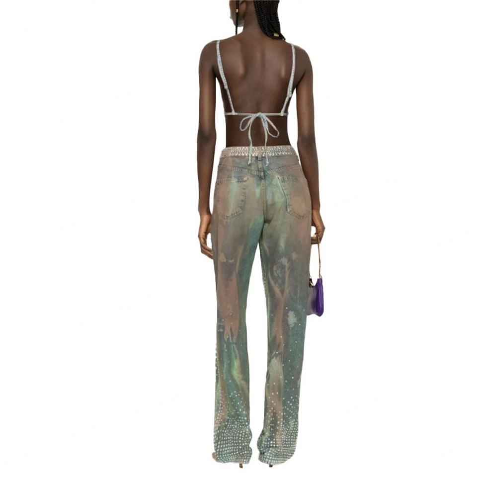 High Quality Tie-dye Women's Straight Leg Jeans With Multi-color Camo Crystal Embellishment