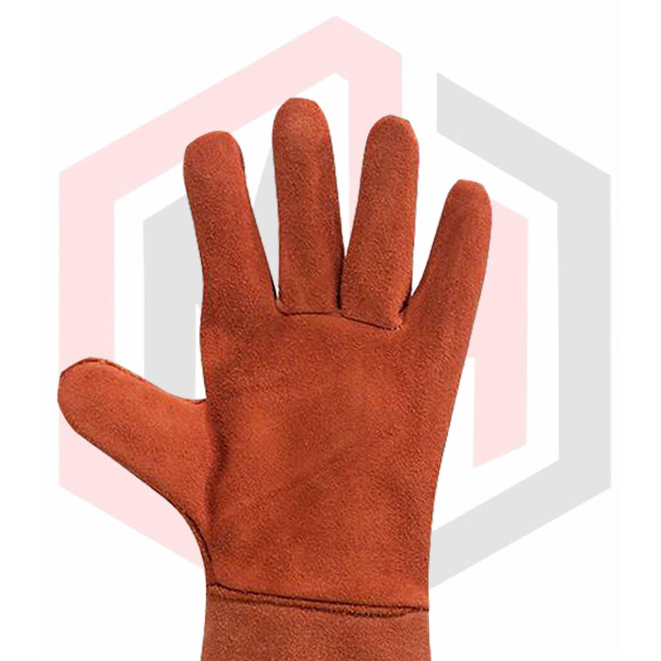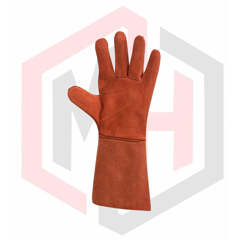ถุงมือเชื่อมทิคหนังวัวแยกชิ้นถุงมือนิรภัยมีคุณสมบัติทนทานต่อการใช้งาน