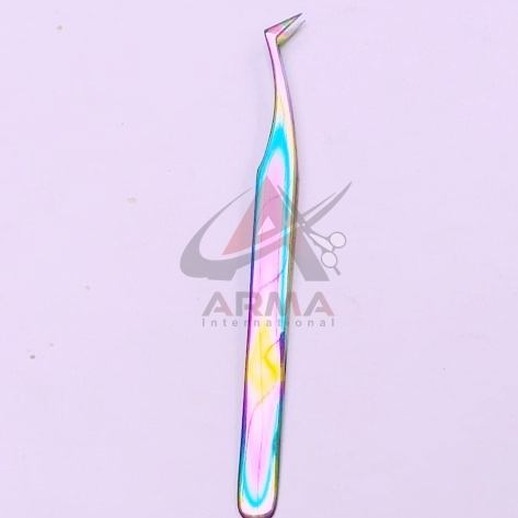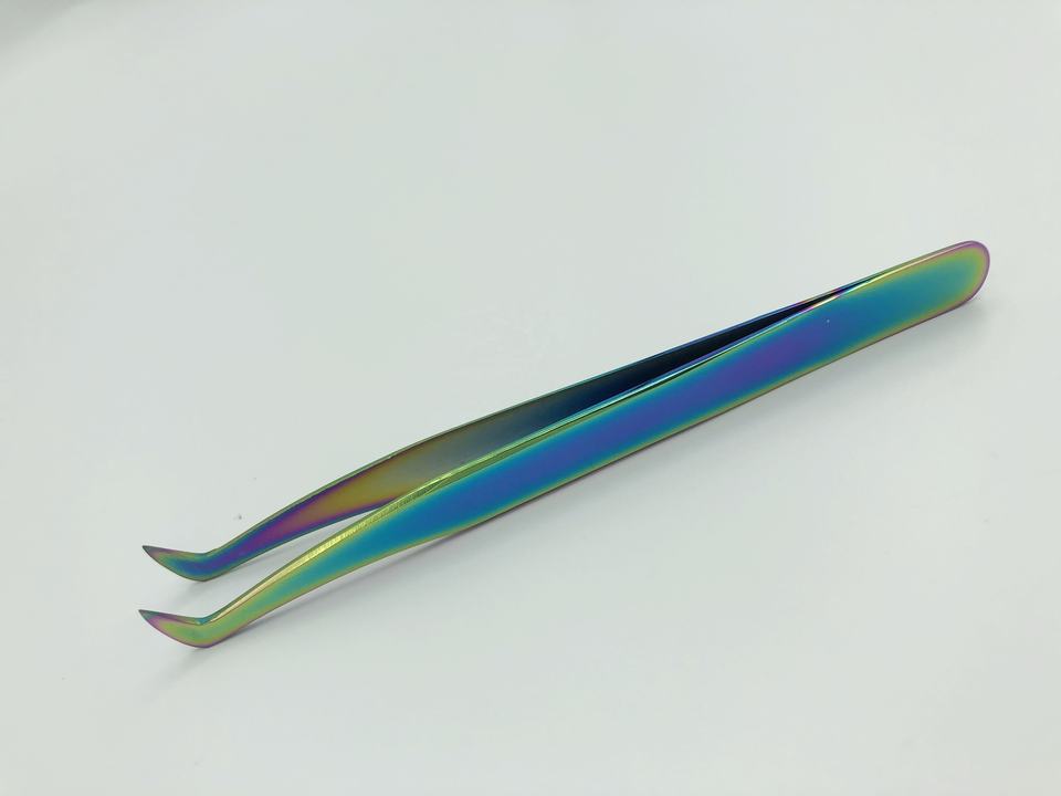 แหนบคีบขนตาไทเทเนียมสีรุ้งเนื้อแข็งแบบรัสเซียเส้นใยรูปตัวแอลแบบหัวแหลมทำจากสเตนเลสทนทาน
