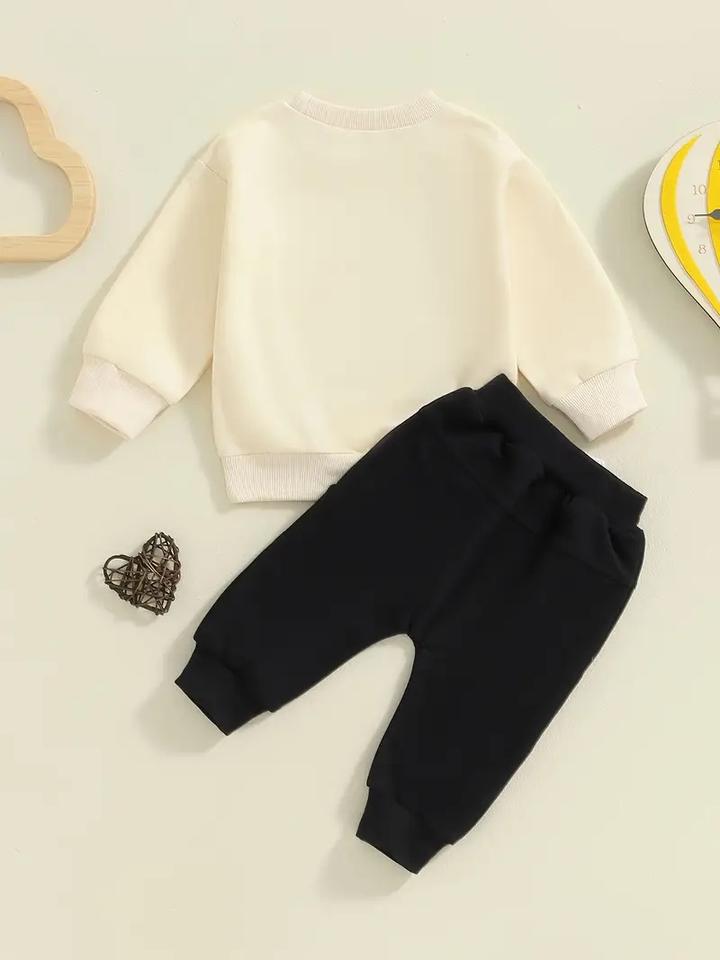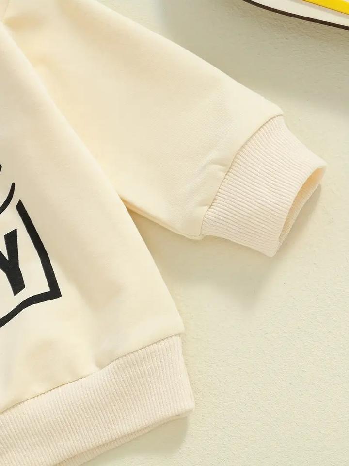 ชุดเสื้อผ้าเด็กผู้ชายคุณภาพสูง ย้อมสีเสื้อผ้า 100% ผ้าฝ้าย พิมพ์ลายตัวอักษร เสื้อแขนยาว คอเสื้อแบบสเวตเชิ้ต กางเกงสีพื้น
