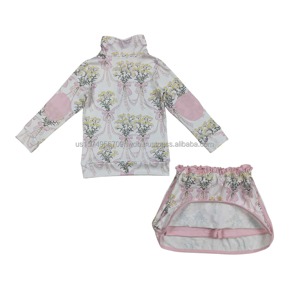 ชุดเสื้อผ้าเด็กผู้หญิงคุณภาพสูง โพลีเอสเตอร์/คอตตอน ลายดอกไม้สีชมพู โบว์ผูก กระโปรงสั้น แขนยาว ชุดซิป สำหรับเด็กทารก