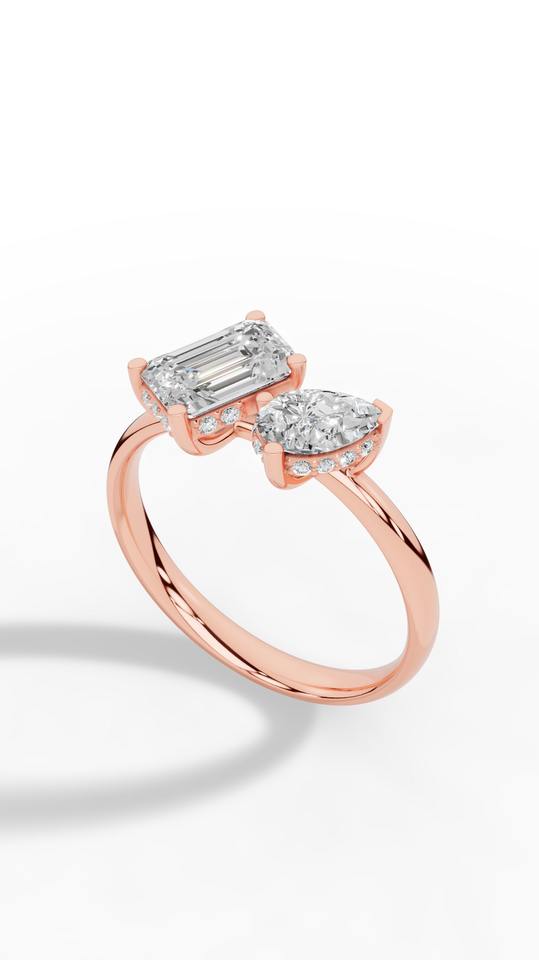 แหวนเพชรคุณภาพสูงทรงลูกแพร์และทรงเหลี่ยมมรกต เพชรเลี้ยงในห้องปฏิบัติการ ทอง 18K ขายส่ง OEM ผู้ผลิตและจำหน่ายเครื่องประดับชั้นดี