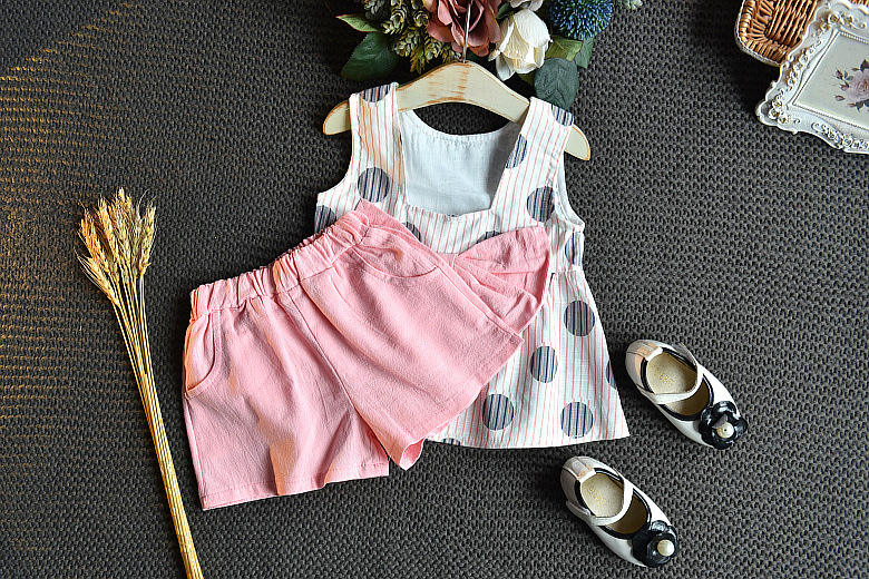 ชุดเสื้อผ้าเด็กผู้หญิงแขนกุดสำหรับฤดูร้อน