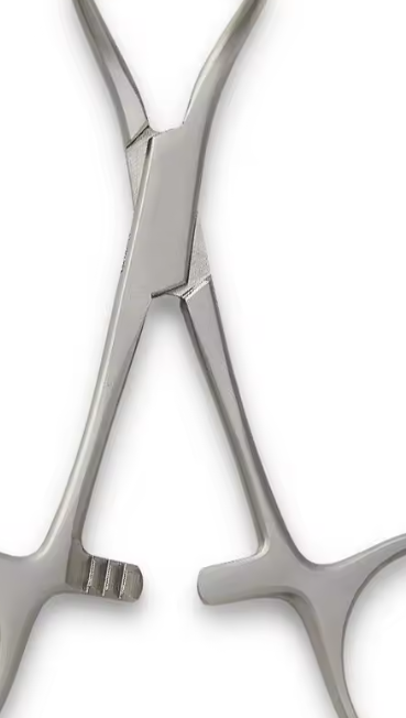 ที่หนีบผ้าขนหนูคุณภาพสูงแบบแมนนวล ขนาด 4 นิ้ว พร้อมหัวบอลล็อคแบบแร็ทเช็ต ผลิตจากเหล็กเยอรมัน ยี่ห้อ Backhaus คีมหนีบผ้าขนหนูสำหรับงานทันตกรรมมืออาชีพ