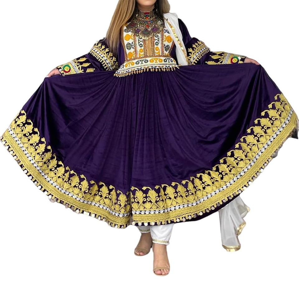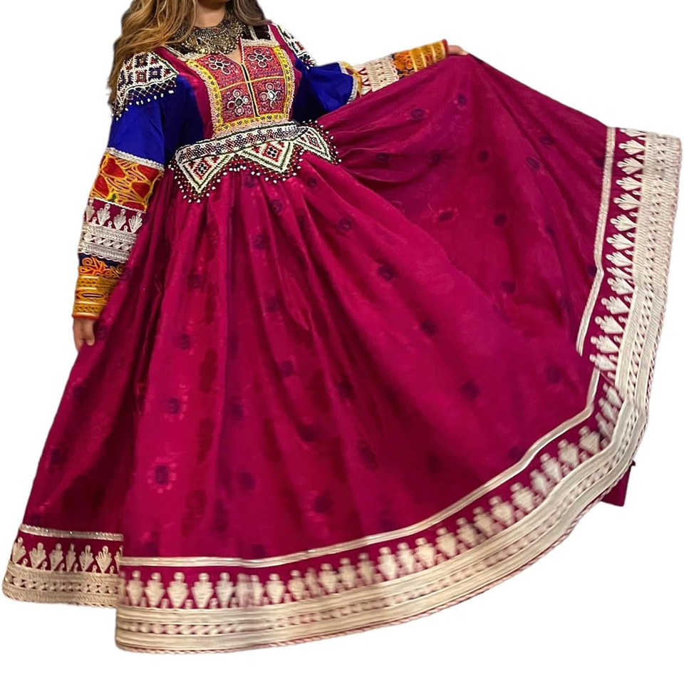 ชุดเดรสอัฟกันแขนยาวปักลายพื้นเมืองสำหรับผู้หญิงชุดเดรสแบบดั้งเดิมคุณภาพสูง