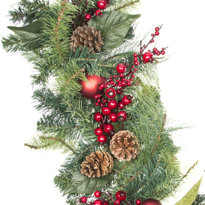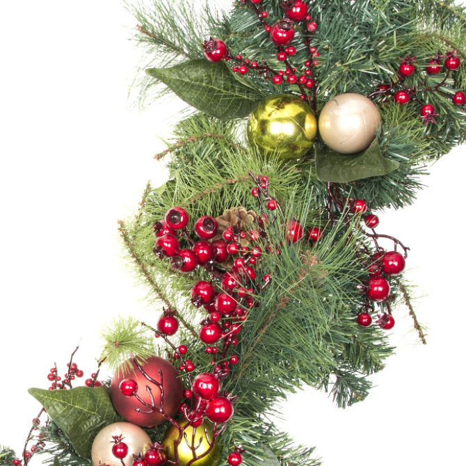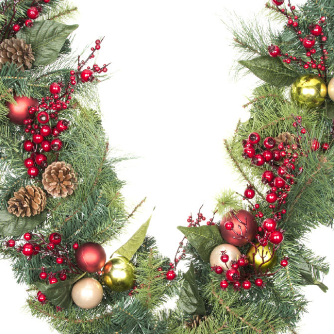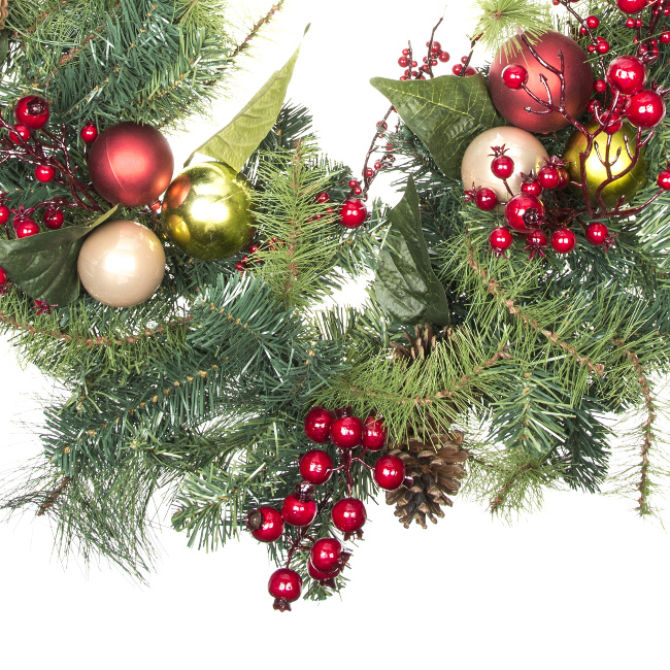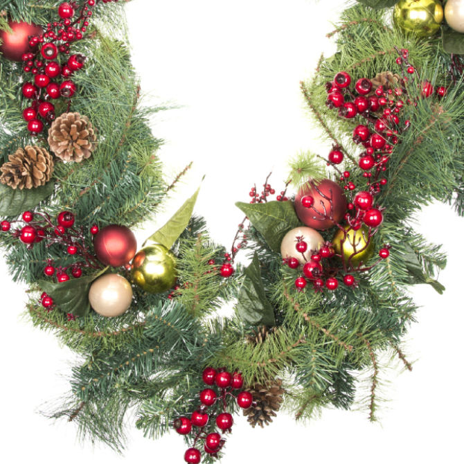 เครื่องประดับคริสต์มาสแบบดั้งเดิมอุปกรณ์ตกแต่งมาลัยสีเขียวสำหรับตกแต่งบ้าน