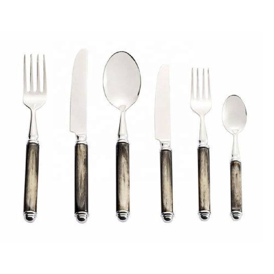 ชุดช้อนส้อมสแตนเลสขัดเงาคุณภาพสูง ด้ามจับทำจากเขาสัตว์แบบดั้งเดิม สำหรับใช้ในบ้าน โรงแรม และร้านอาหาร