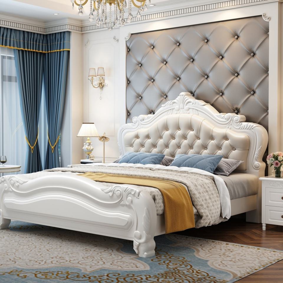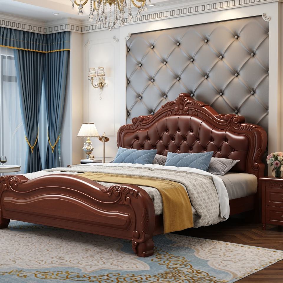 เตียงคิงไซส์/ควีนไซส์ คุณภาพสูง สไตล์หรูหราแบบดั้งเดิม โครงเตียงไม้จริง สำหรับเฟอร์นิเจอร์ห้องนอน