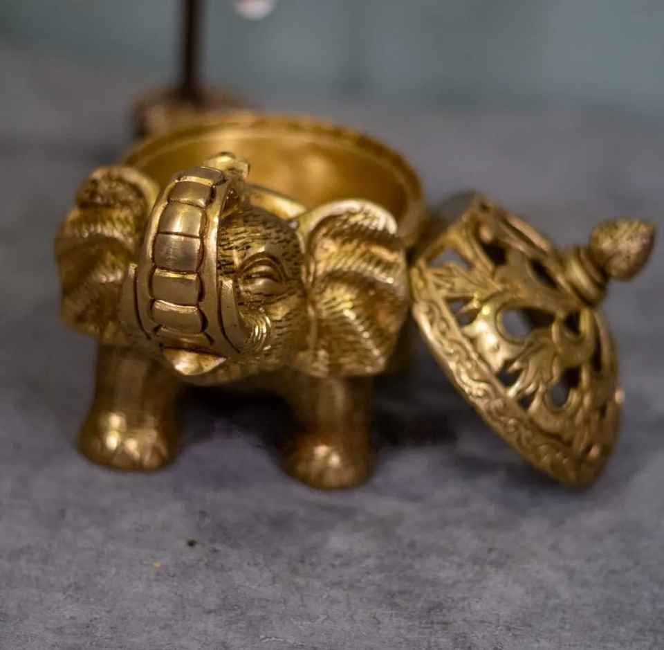 เครื่องหอมแบบห่วงรูปช้างทำจากทองเหลืองบริสุทธิ์สำหรับประดับวัดในบ้านวัสดุงานฝีมือโลหะจากไม้