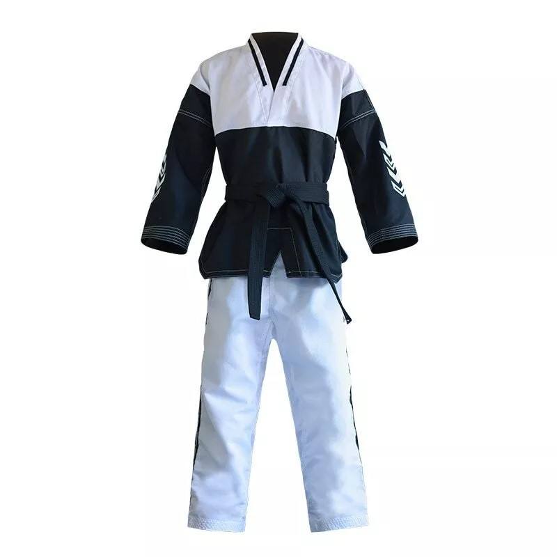 ชุดเทควันโดผู้ชายคุณภาพสูงแบบดั้งเดิม ผ้าผสมคอตตอน 45% และโพลีเอสเตอร์ 55% แห้งเร็ว ระบายอากาศได้ดี ผลิตตามสั่งสำหรับนักเรียน