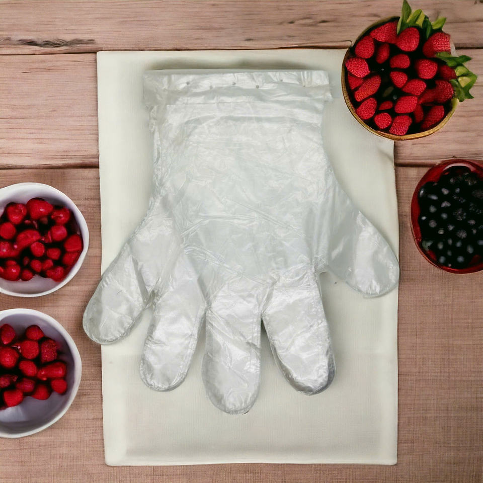 ถุงมือนิรภัยแบบใช้แล้วทิ้งพลาสติก PE PE สำหรับใช้ในครัวเรือนทุกวันเพื่อการทำความสะอาดผลไม้อาหารเพื่อสุขภาพ