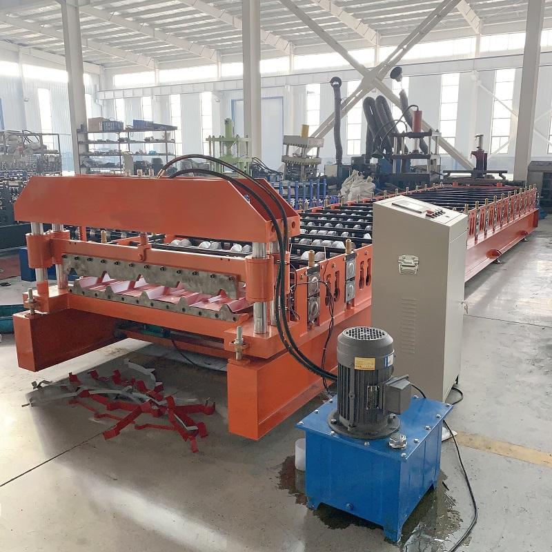 เครื่องขึ้นรูปกระเบื้องแผ่นหลังคาสี่เหลี่ยมคางหมูอัตโนมัติพร้อมชุดควบคุม PLC และแบริ่งความจุ8-15M/นาที