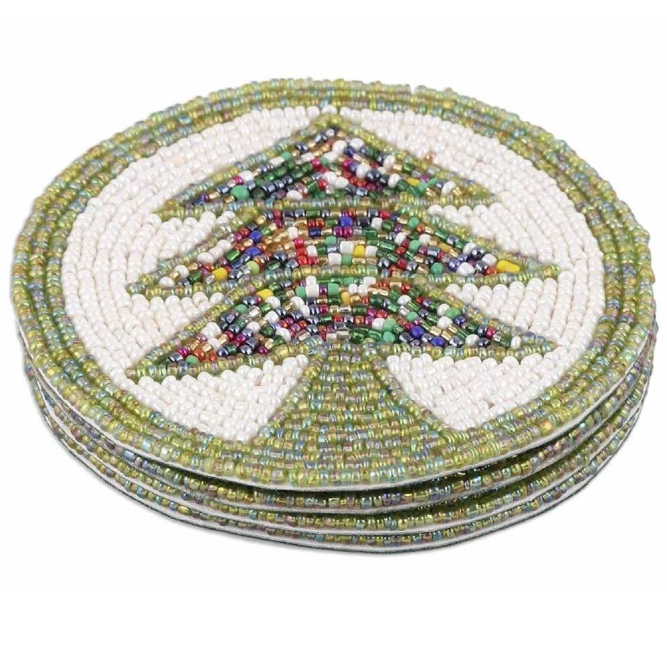 ที่รองแก้วลูกปัดแก้วลายต้นไม้ที่รองแก้วพร้อมจานรองแก้วสำหรับใส่เครื่องดื่ม