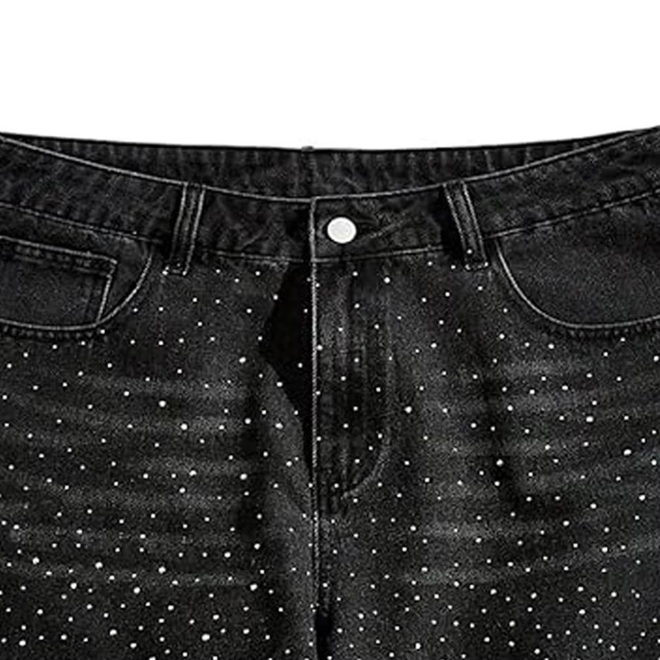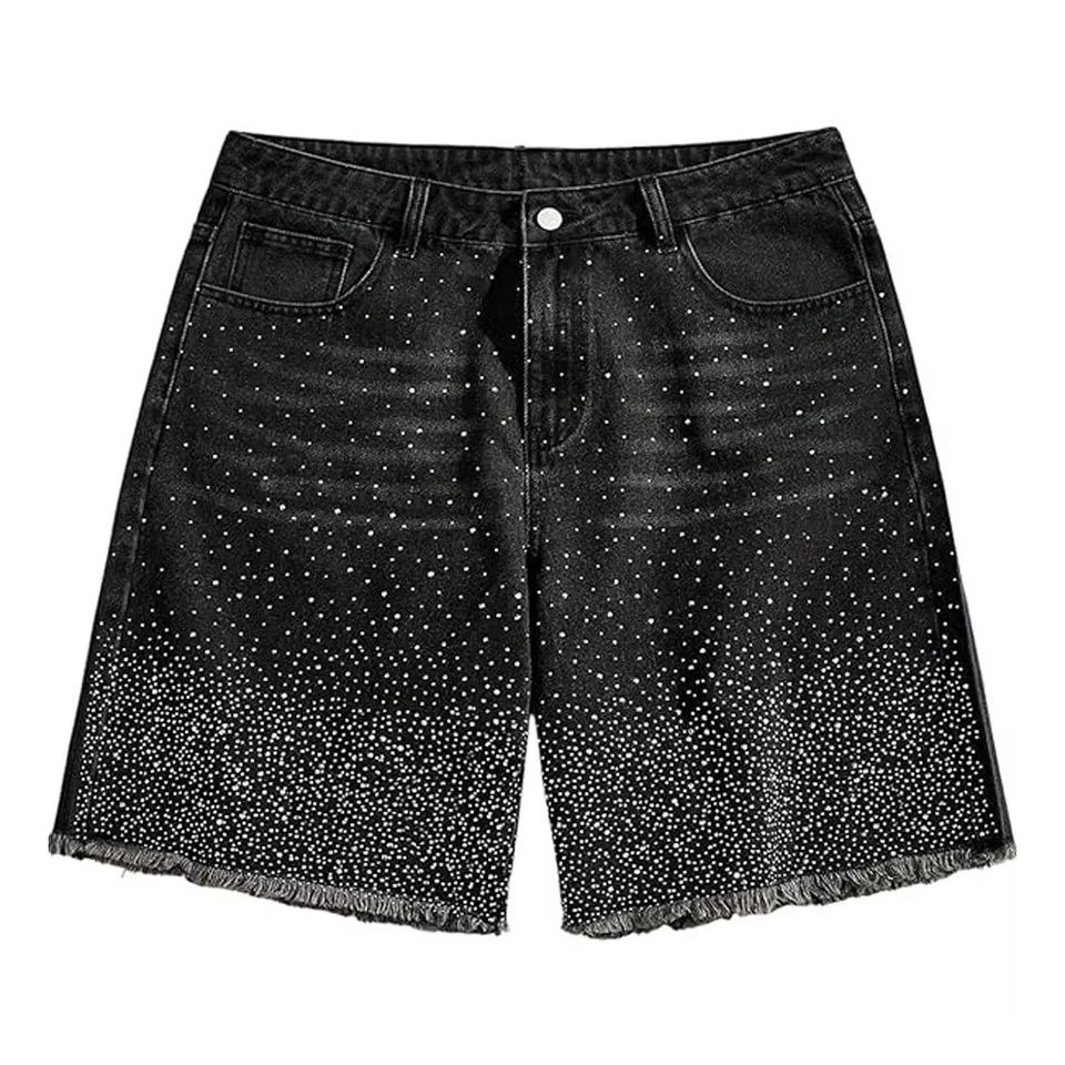 กางเกงยีนส์ขาสั้นทรงแบ็กกี้แบบวินเทจ แต่งดีเทลขาดๆ ซักย้อมสีเอซิด ประดับคริสตัล คุณภาพสูง กำลังฮิต สำหรับผู้ชาย