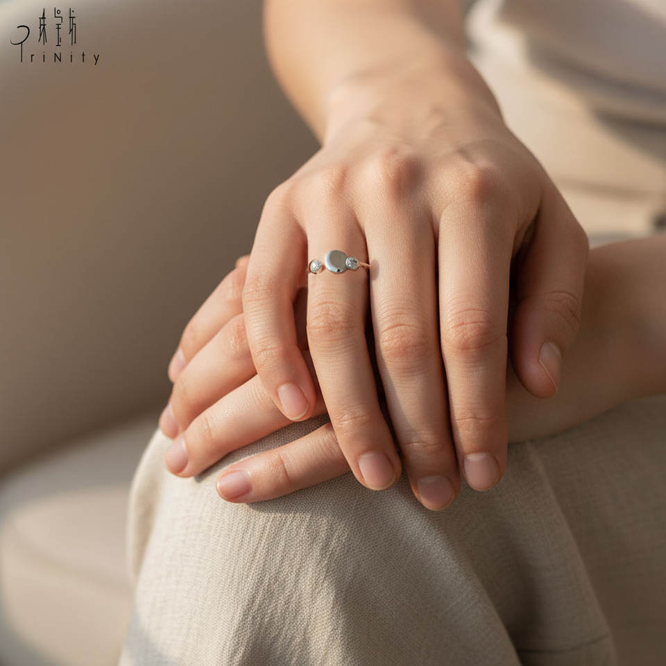แหวนดีไซน์เรขาคณิตคุณภาพสูงทันสมัยราคาส่ง ชุดแหวนทองคำขาว 18K ประดับเพชรแท้