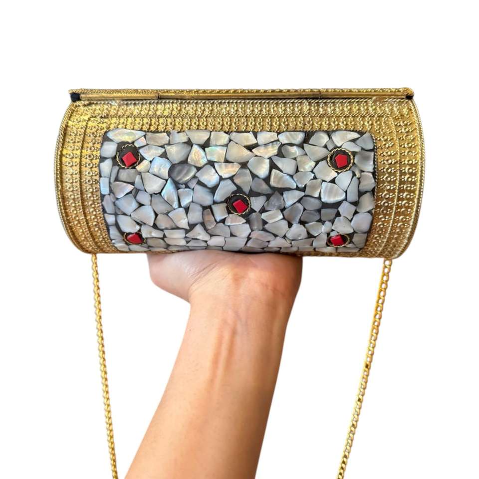 ที่แขวนกระเป๋าโลหะของผู้หญิงทันสมัยคุณภาพสูงกันน้ำหรูหราเป็นมิตรกับสิ่งแวดล้อมดีไซน์โมเสคพื้นเมืองคลาสสิก