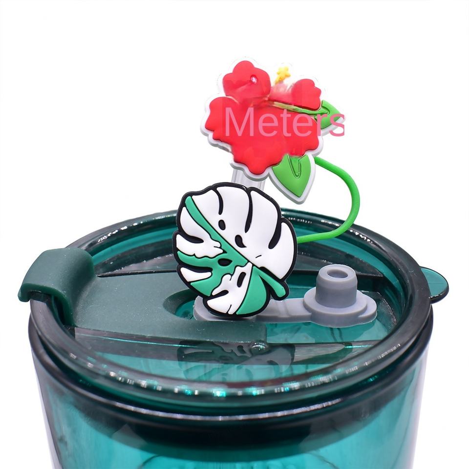 ชุดตกแต่งหลอดดูดซิลิโคนยางนิ่ม PVC คุณภาพสูง ลายพืชเมืองร้อน สำหรับตกแต่งบาร์ ป้องกันฝุ่น ครอบหลอดดูด