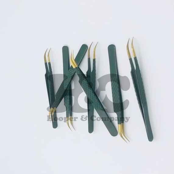 แหนบต่อขนตาปลอมทำจากสเตนเลสสีเขียวทองมีโลโก้ออกแบบได้ตามต้องการ
