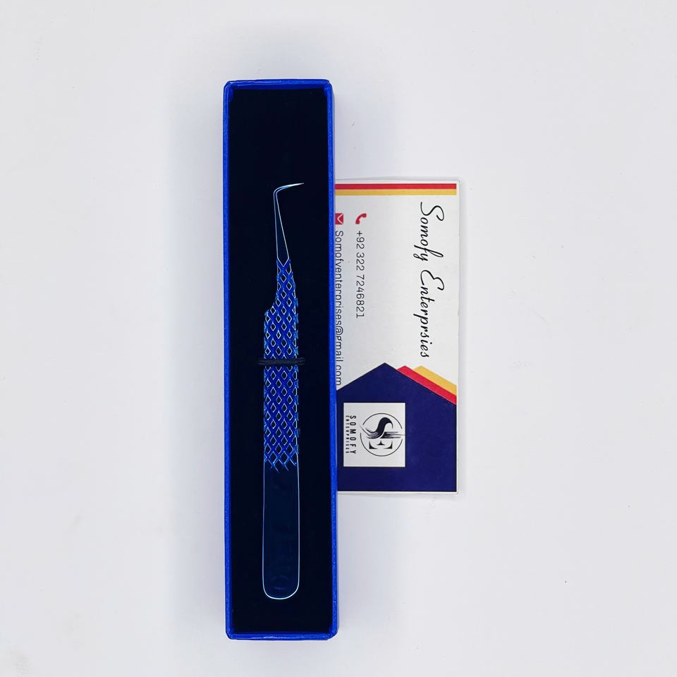 แหนบต่อขนตาปลายแหลม 10 มม. คุณภาพสูง ผลิตจากสแตนเลสสตีลเคลือบสีน้ำเงินพลาสม่า รุ่นใหม่ พร้อมโลโก้ MINK ที่เป็นมิตรต่อสิ่งแวดล้อม