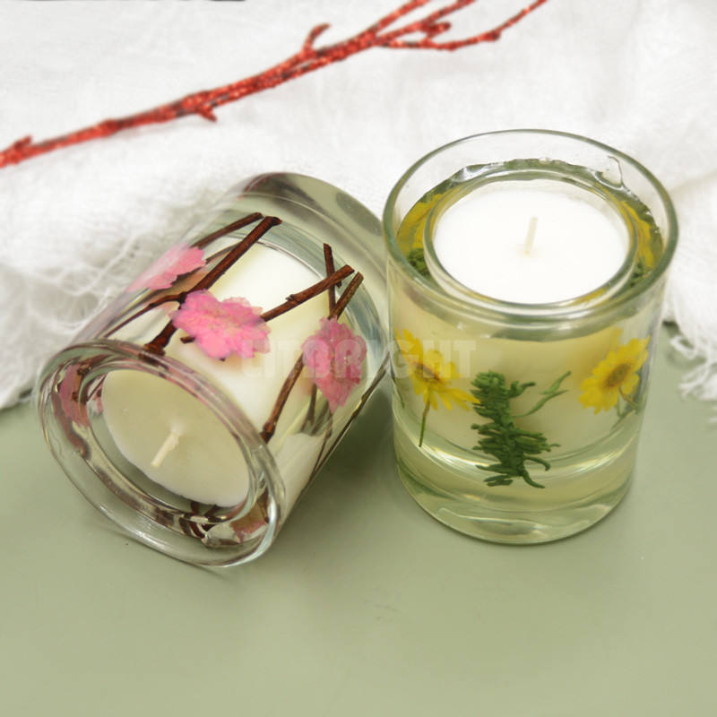 เทียนแก้วพาราฟินภายในทำจากผ้าไหมพิมพ์ลายดอกไม้แห้งเทียน
