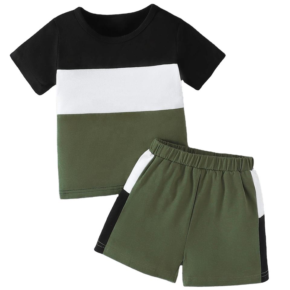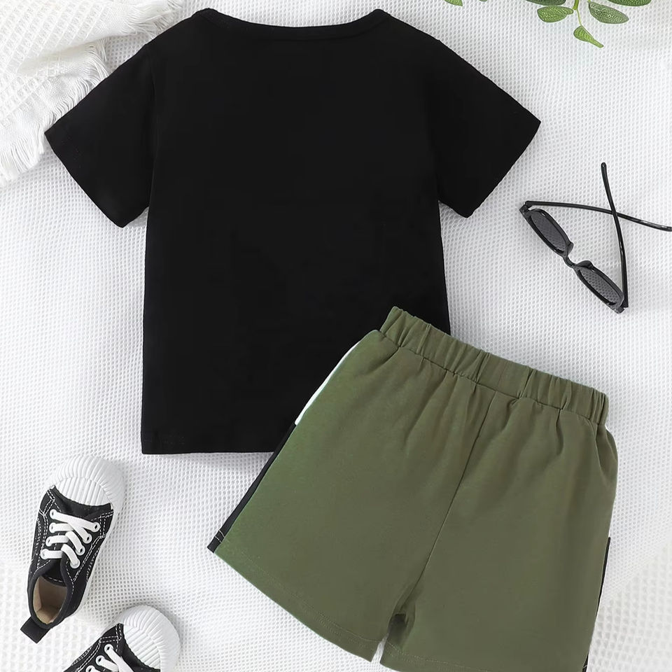 ชุดลำลองสองชิ้นคุณภาพสูงสำหรับเด็กผู้ชาย ขายส่งชุดกีฬาฤดูร้อนสำหรับเด็ก ผ้าแคนวาสลายพราง