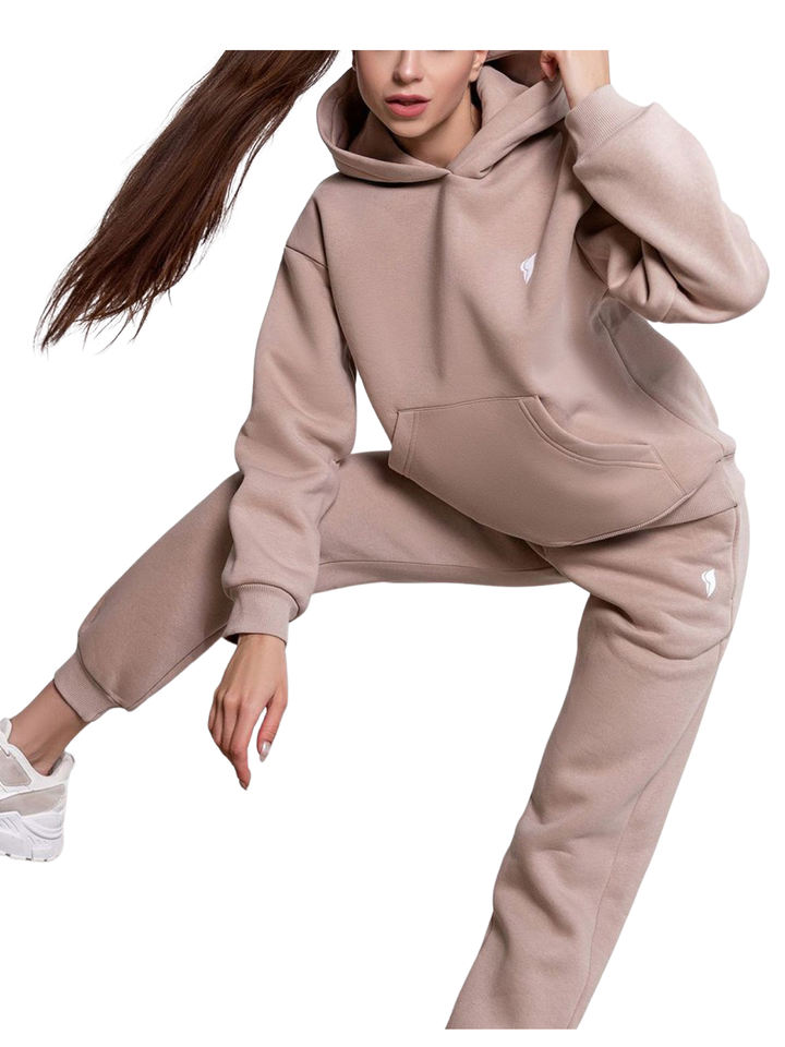 ชุดวอร์ม2ชิ้นสำหรับผู้หญิง,ชุดวอร์มกางเกงวิ่งพร้อมกระเป๋าแบบสวมหัวแขนยาวมีฮู้ด
