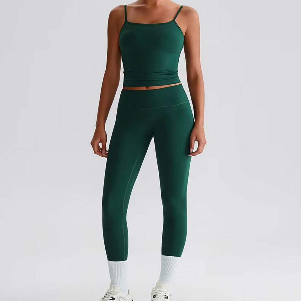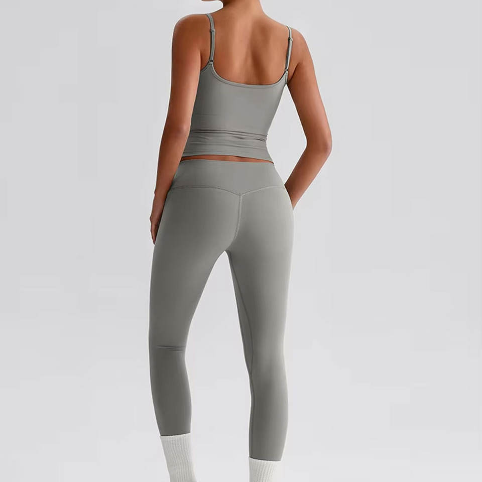 เซตโยคะผ้าไนลอนสแปนเด็กซ์สำหรับผู้หญิงดีไซน์ใหม่ชุดเล่นกีฬายิมเอวสูงสองชิ้น