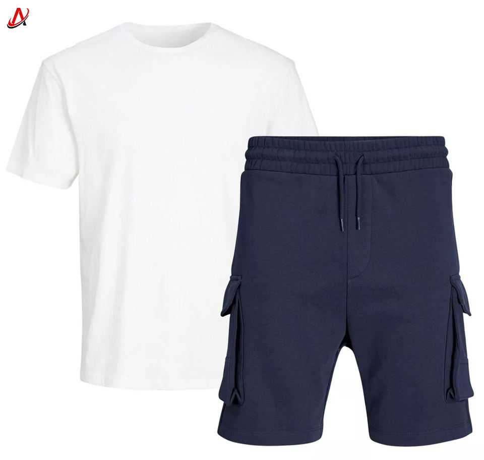 ชุดวอร์มสองชิ้นสำหรับฤดูร้อนเสื้อยืดพิมพ์ลายแนวสตรีทน้ำหนักเบากางเกงขาสั้นสีตัดกันดีไซน์ทันสมัยแขนสั้น