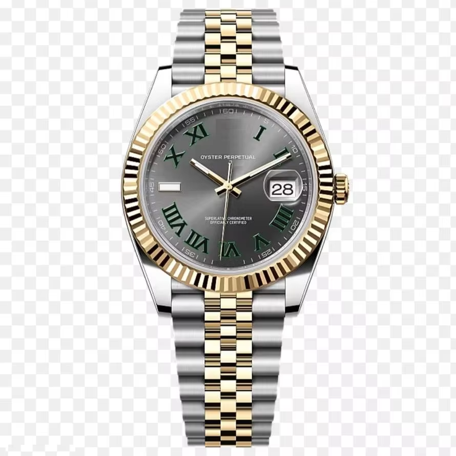 นาฬิกาสองสีคุณภาพสูง รุ่นลิมิเต็ดอิดิชั่น ระบบจักรกล หรูหรา สไตล์ฮิปฮอป หน้าปัดสีเขียวแบบสเลทซันเรย์ ตัวเลขโรมัน สายขนาด 22 มม.