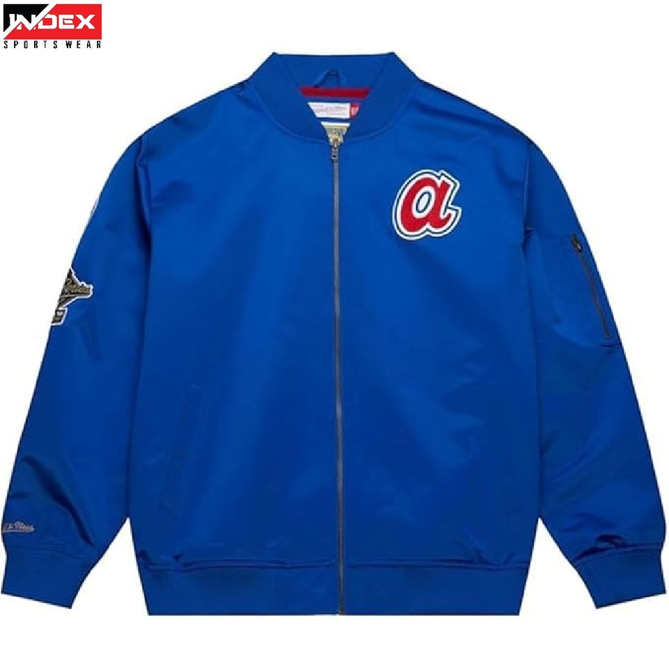 แจ็คเก็ตวาร์ซิตี้ผ้าซาตินคุณภาพสูงจากสหรัฐอเมริกา ปักโลโก้ได้ตามต้องการ แจ็คเก็ตบอมเบอร์ผู้ชาย เสื้อผ้ากีฬาระดับพรีเมียม ขายส่งจากโรงงานโดยตรง
