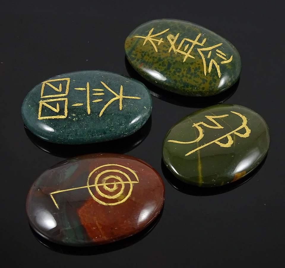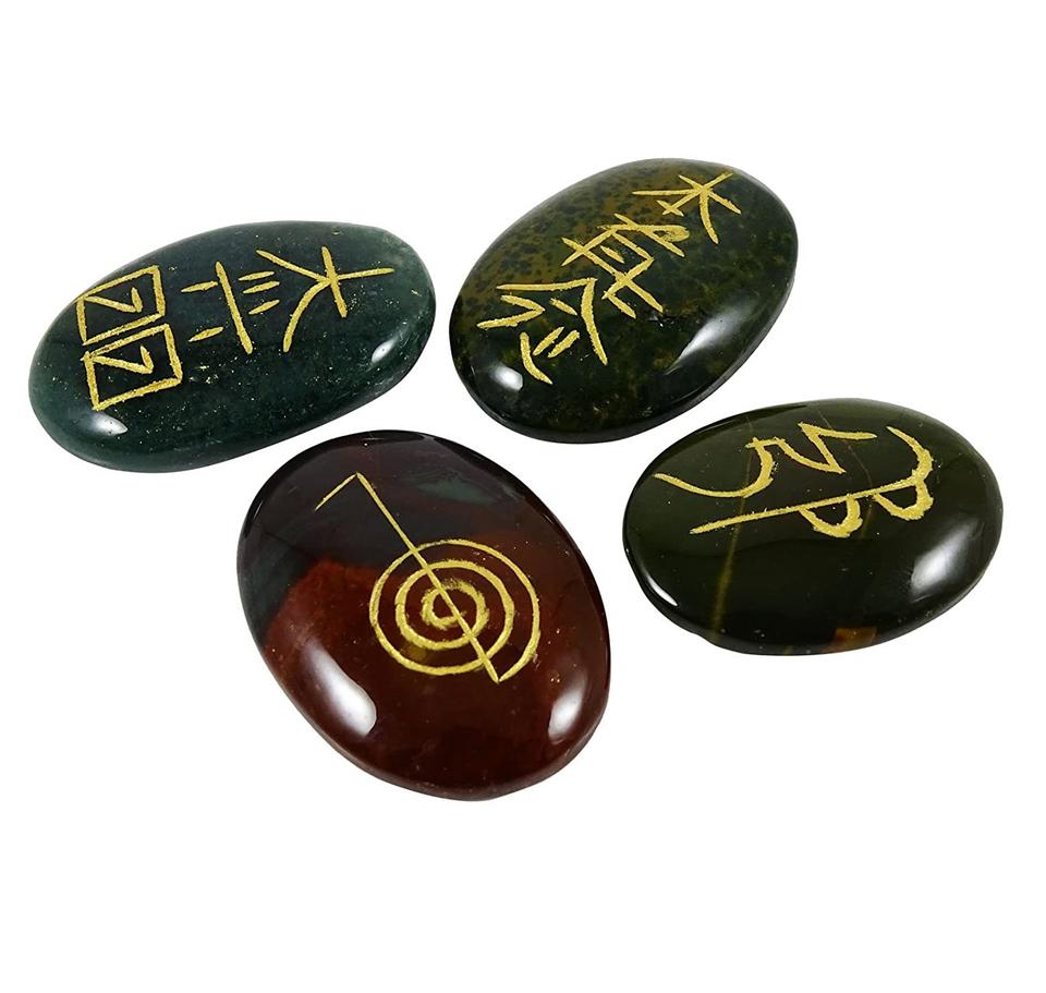 เซ็ตพลอยคริสตัลเลือดจาก Usui reiki สัญลักษณ์ฮวงจุ้ยทรงรีตามธรรมชาติสำหรับการรักษาถ้วยรางวัลขายส่ง