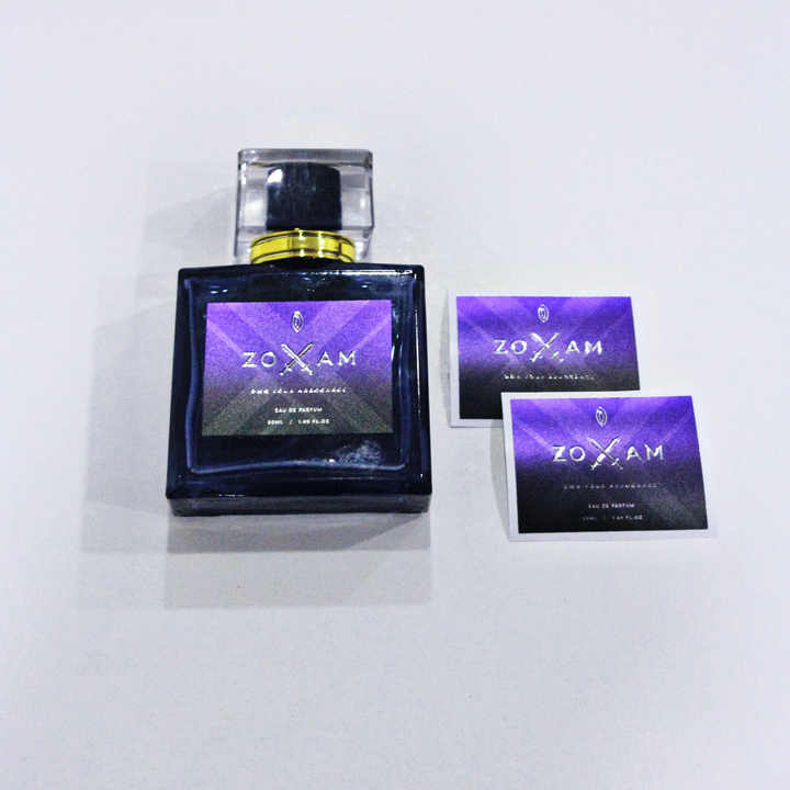 สติกเกอร์ฉลากน้ำหอมพีวีซีเคลือบโลหะลายนูนกันรังสียูวีสำหรับขวดน้ำหอมและบรรจุภัณฑ์เพื่อการดูแลผิวกันน้ำเป็นมิตรกับสิ่งแวดล้อม