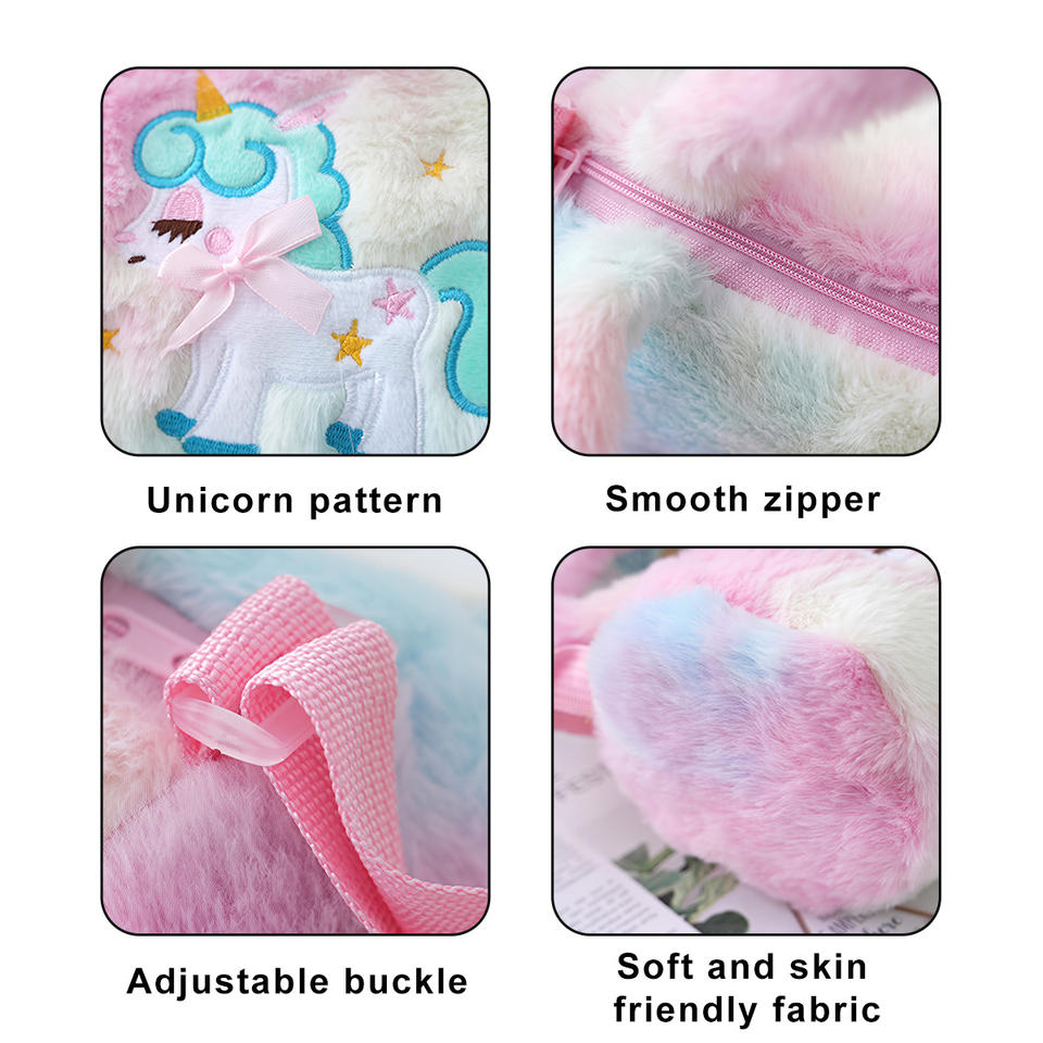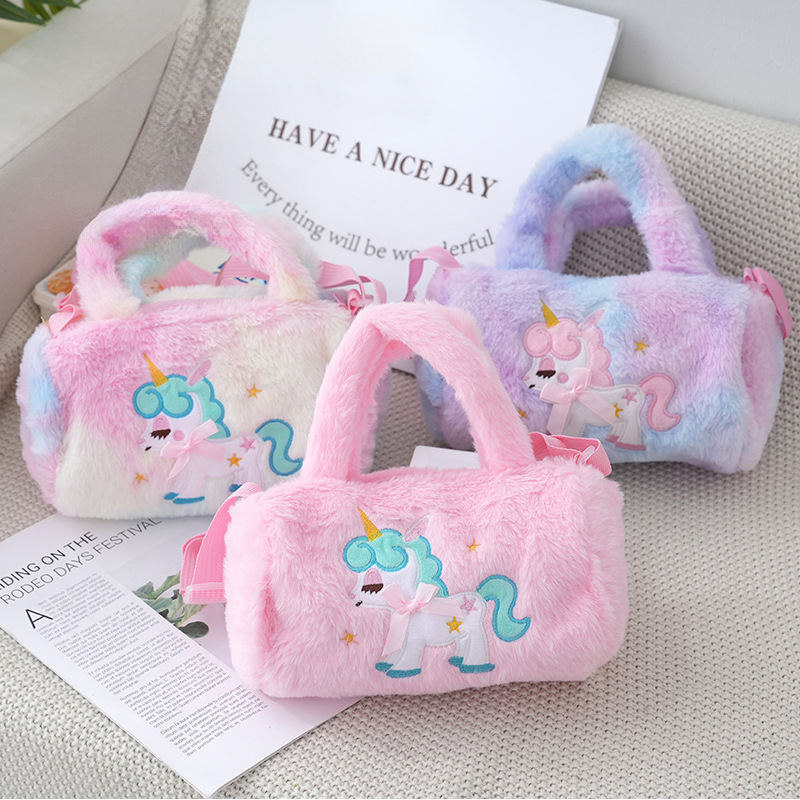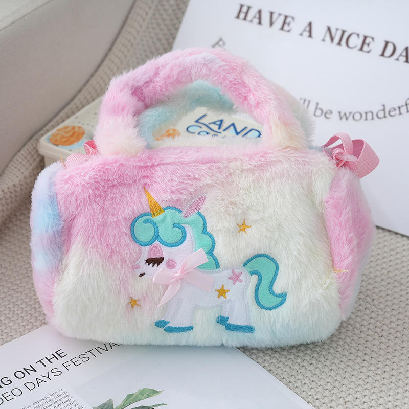กระเป๋าสะพายข้างเด็ก ลายการ์ตูนยูนิคอร์น คุณภาพสูง น่ารัก นุ่มนิ่ม เหมาะสำหรับเด็กทุกเพศทุกวัย ใช้ในฤดูหนาว วัสดุโพลีเอสเตอร์ ปิดด้วยซิป